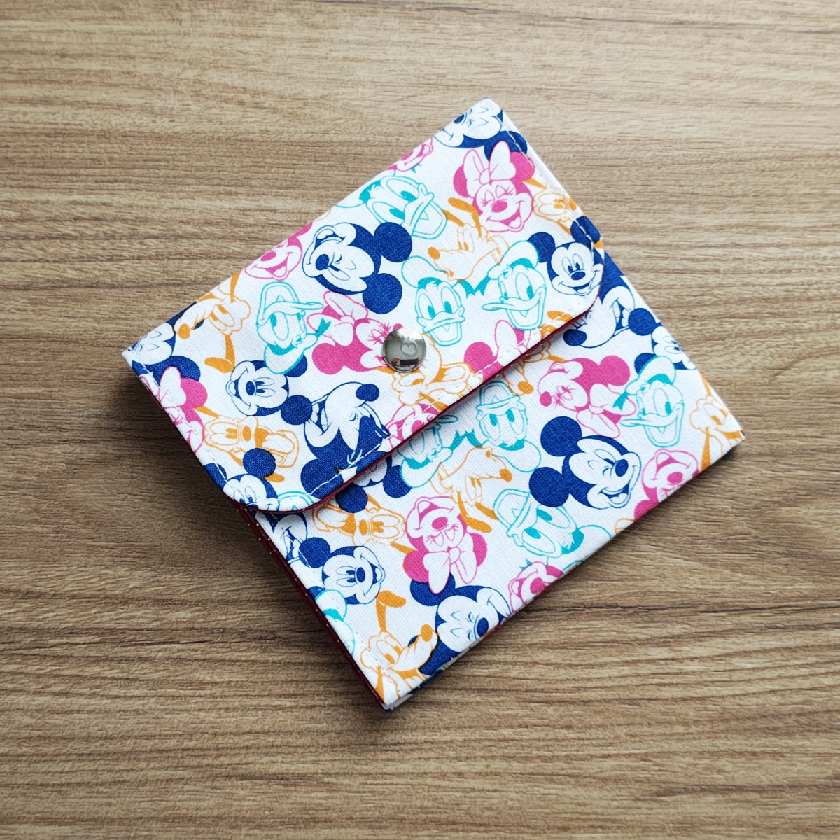 Carteira em tricoline 100% algodão, estampa com personagens clássicos da Disney em cores vibrantes, trazendo um toque icônico ao seu dia.