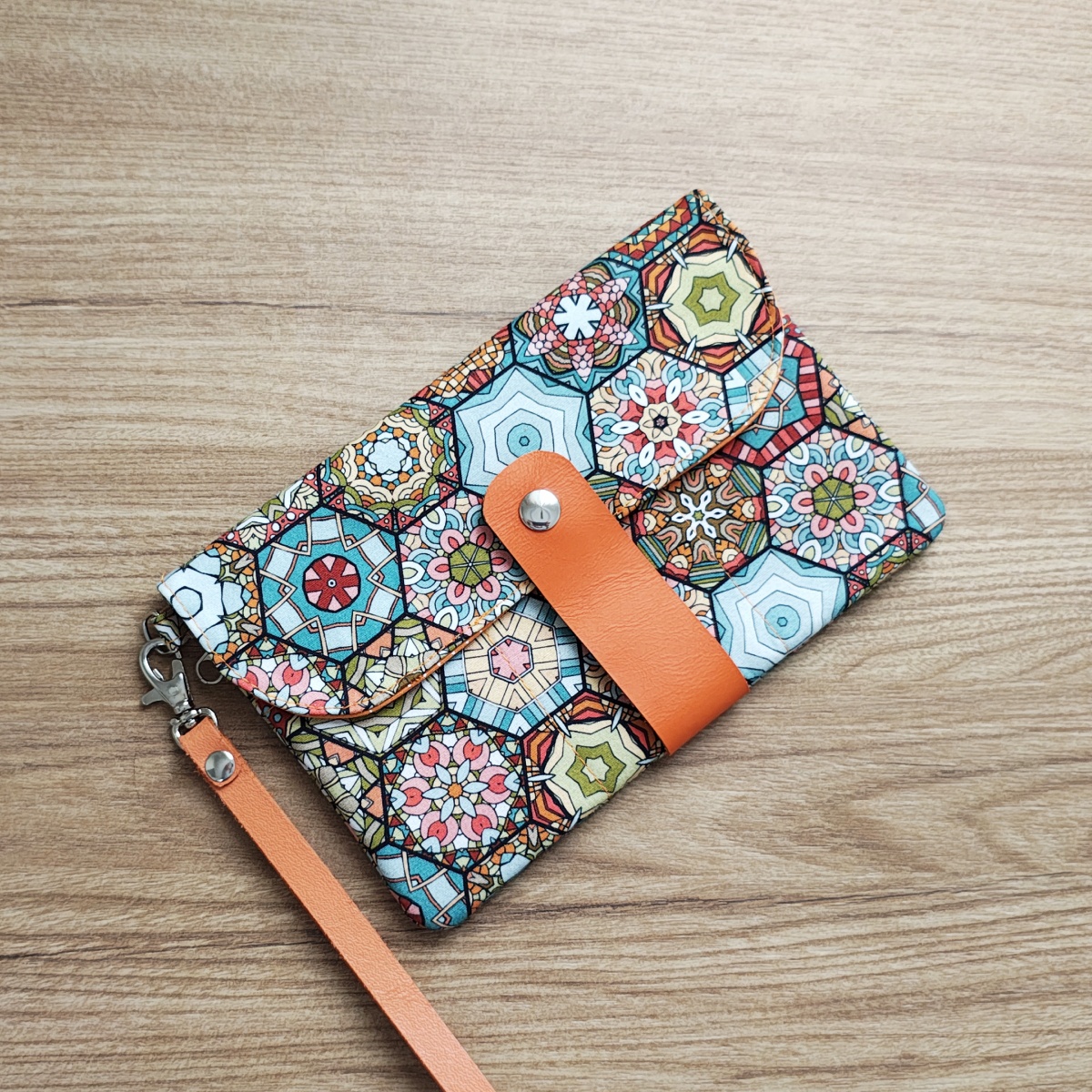 Carteira em tricoline 100% algodão, com estampa vibrante e detalhada que transforma cores e formas em puro encanto.
