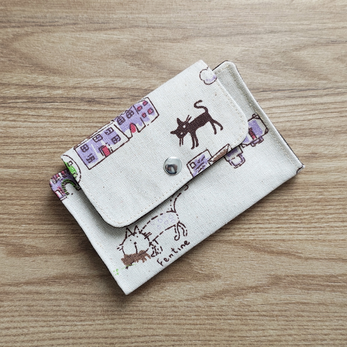Carteira em linho rústico e tricoline 100% algodão, estampa meiga de gatos em Londres.